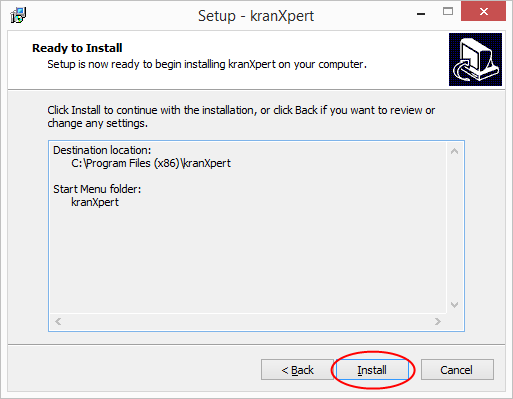 After the setup is finished it open the network.ini file in the text editor. Here replace the localhost with your TCP/IP adress of your server where the kranXpert licence manager is installed. Save the changes and start kranXpert.
